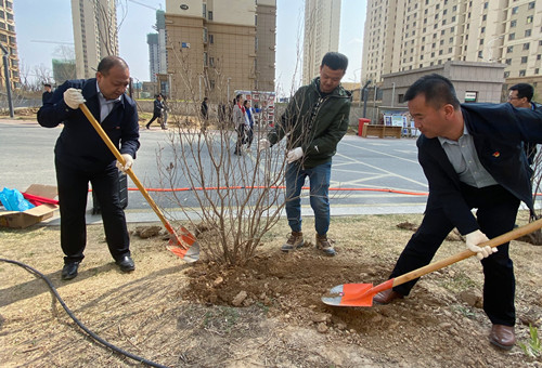 在文曲湖景园住宅小区,职投公司党支部联合物业公司党支部全体党员在绿色倡议条幅上签字承诺:“争做绿色文明使者,为建设高质量美丽新区奉献一份力量。”活动中,大家两人一组,五人一群,分工协作,扛苗放苗,挥锹铲土,扶苗踩土,忙得不亦乐乎,整个植树活动现场一片热火朝天的劳动景象。经过1个多小时的劳动,60余棵小树苗在景园小区“安家落户”,为那里添上了一片新绿。