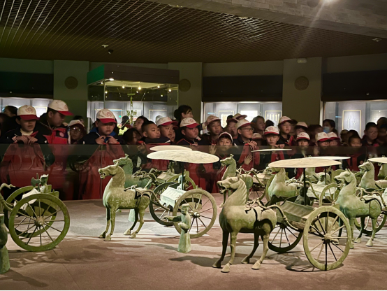 研学过程中,学生们分别来到甘肃省博物馆、烈士陵园,在讲解员的带领下学习了解甘肃丝绸之路文明的珍贵历史文物、神秘彩陶、甘肃佛教艺术史,感受甘肃地区的历史文化演变过程,列队整齐地肃立在革命烈士纪念碑前,通过奏唱国歌、重温少先队誓词、敬献鲜花,向先烈与英雄致以最崇高的敬意。随后参观了兰州战役纪念馆,直观深入地了解兰州解放战役背后的故事,从革命先烈的事迹中汲取奋进前行的力量。