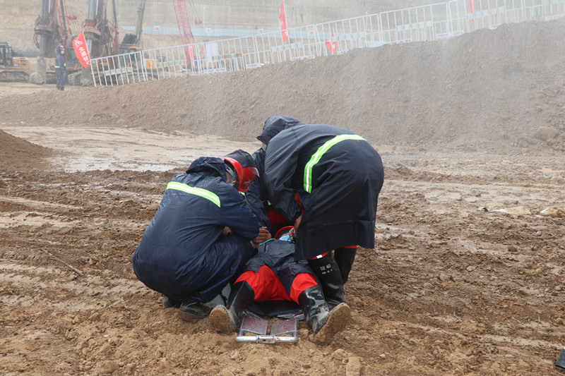 本次演练以贴近防汛抢险实战形式,模拟兰州新区遭遇强降雨,施工现场积水不断涌入基坑、水位快速上升、基坑坡脚出现局部滑坡等“险情”。演练接到汛情“警报”后,及时启动项目应急救援预案,应急救援队伍迅速投入抢险救援,受困人员得到及时救援和转移,基坑排水抢堵有力有序。通过抢险救援组、医疗救护组、通讯联络组、物资设备保障组等工作组密切配合,成功处置了基坑边坡出现滑坡的险情,被困人员成功获救,突发事件得到有效处置,整个防汛抢险过程指挥调度有力、抢险救援科学有序,起到了模拟示范、查漏补缺的警示效果。