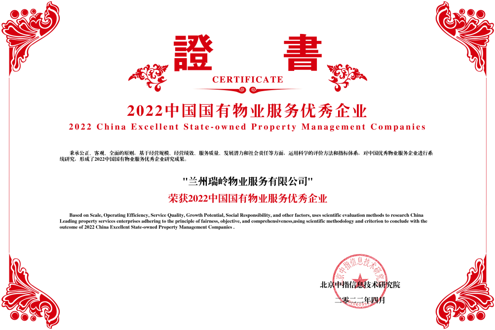”瑞岭雅苑小区、方家坡(棚改)安置小区获评“甘肃省优秀示范物业服务项目”“2020年甘肃省优秀示范小区”。