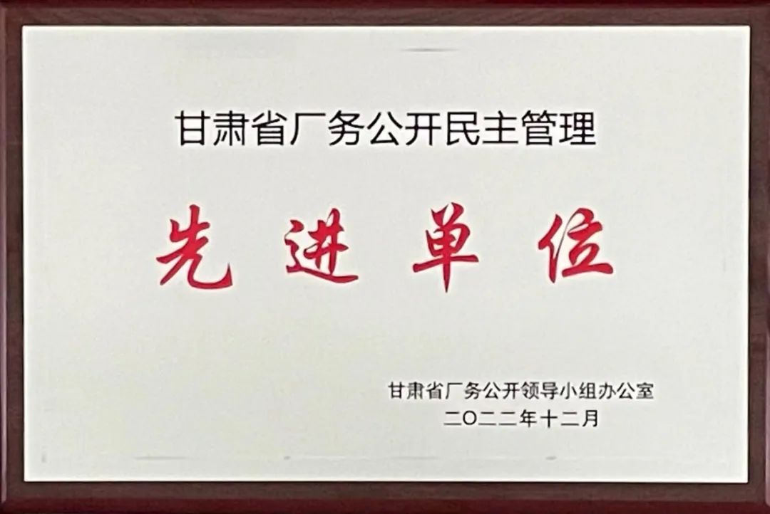 荣获“甘肃省厂务公开民主管理先进单位”荣誉称号