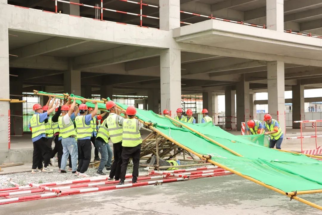 本次应急救援演练围绕“脚手架坍塌”和“火灾事故”展开,分事故发生、事故汇报、抢险救灾、警戒疏散、医疗救助五个环节进行。演练中,各应急抢险队反应迅速、分工明确、配合默契、处置得当,全面展示从险情预警、人员撤离、灾情报告、风险评估、指挥调度、抢险救灾等应急救援流程和工作环节。情景展现真实,教学内容丰富,达到了提高项目施工人员安全防范意识和应急救援能力,让一线人员在遇到突发事故时,懂得如何采取现场救护、事故汇报等应急措施的效果。