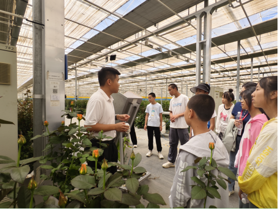 “叔叔,这些玫瑰花是怎么种的啊?”“这些花都采用无土栽培的方式,大家请往这边看......”在芬芳诱人的鲜花种植产业基地,一株株展颜吐芳的鲜花汇成了色彩缤纷的“花海”,孩子们漫步其中,不时询问花卉养护类问题,讲解员认真解答玫瑰的育种、育秧、管护、采摘相关知识,带他们了解“科技感”满满的智能化培育系统,近距离观察产业工人对花卉的修剪、包装工作,通过这些真实而生动的案例和情境,点燃孩子们的创想火花,激发他们对科技探索的深厚兴趣。