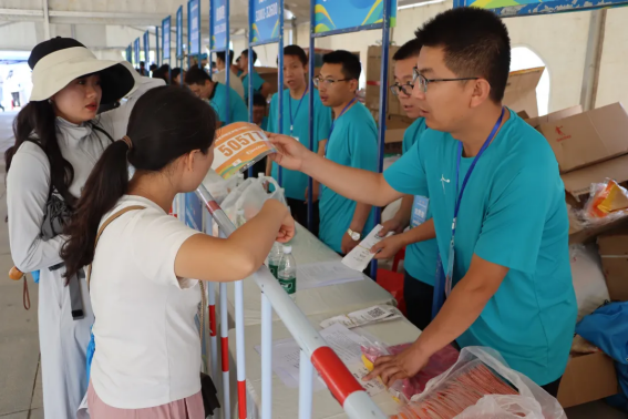 积极为参赛选手发放选手服、号码牌、补给物资