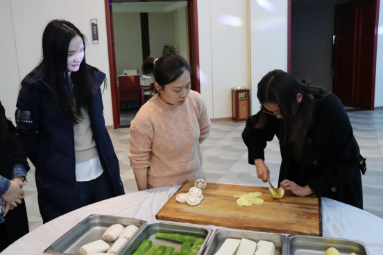 活动现场,女职工们围绕厨艺主题,各显神通。洗菜、切菜、备菜,大家刀工娴熟、动作迅速,转眼间,土豆、莲藕、莴笋等食材在她们的巧手下迅速变身成厚度均匀的薄片,让人目不暇接。大家一边欣赏着厨艺展示,一边交流着各自的学习心得和生活趣事,现场充满了欢声笑语。此外,工作人员还为现场女性送上了鲜花,感谢她们在家庭和社会中的无私贡献,并祝愿大家节日快乐、万事顺意。
