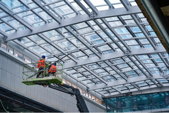 备受瞩目的新投中心商业综合体项目进入全面冲刺阶段。“目前,现场施工人员达200余人,项目采光顶、连廊施工完成95%,结构加固、消防改造、空调安装、吊顶、地砖铺贴等工序正紧锣密鼓有序展开。”项目业主代表王兵介绍,作为未来的城市新地标,新投中心总建筑面积达10.77万平方米,建成后将打造集购物、餐饮、娱乐、文化、社交、商务服务于一体的“一站式”体验中心,成为拉动区域消费、提升城市品质的重要引擎。