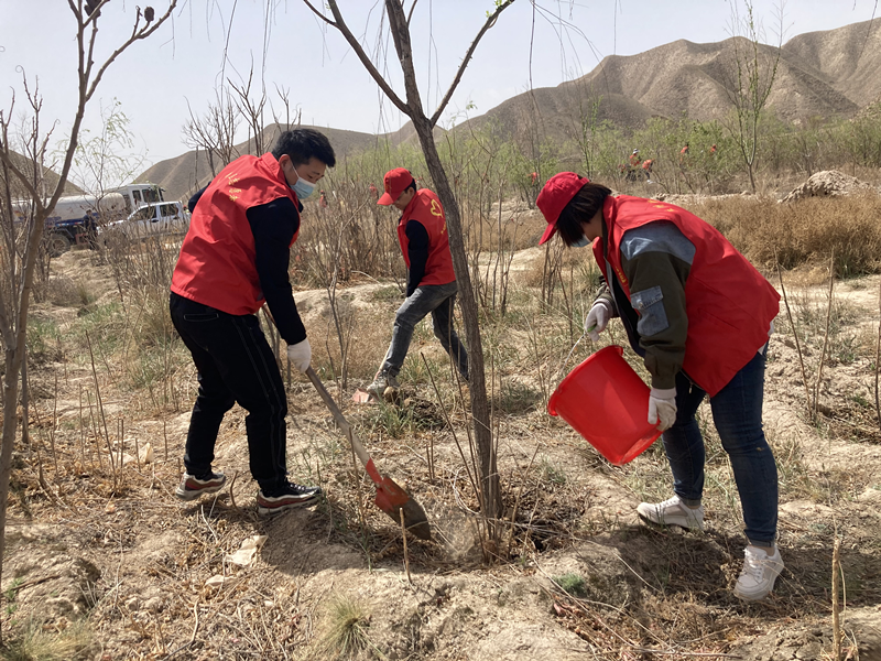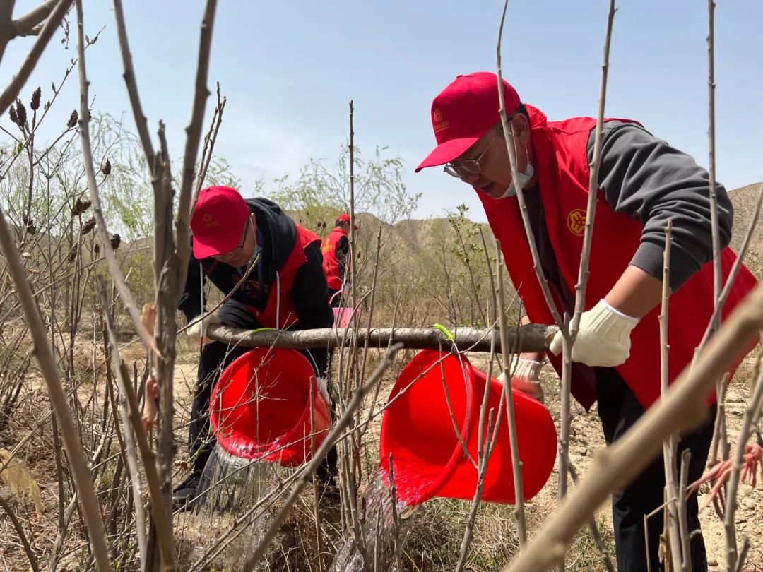 28日下午,跌马沟苗圃基地内,红色闪动、人影穿梭,一派热火朝天的繁忙景象。翻耕土地、清除藤蔓、培土施肥、提水浇灌……大家分工有序、配合默契、迎风劳作、挥汗如雨,红色的志愿服装点缀在这片远离城市喧嚣的绿水青山之间,俨然成为苗圃基地“最美”的风景。经过2个多小时的辛勤劳动,一棵棵“喝饱了水”的树苗在春风中昂然挺立,焕发出勃勃生机。劳动过程中,志愿者们相互协作、团结友爱,在劳动中既收获了喜悦,也锤炼了党性、磨炼了意志、增强了团结协作能力。