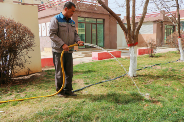 水是绿植返青生长的关键保障。公司全面开展灌溉设施检修维保,及时更换修复老化、损坏阀门与配件;结合各区域土壤墒情,科学布设浇灌管网,有序推进返青水浇灌,做到足量、均匀、透彻,为苗木发芽抽枝、茁壮成长提供充足水分。